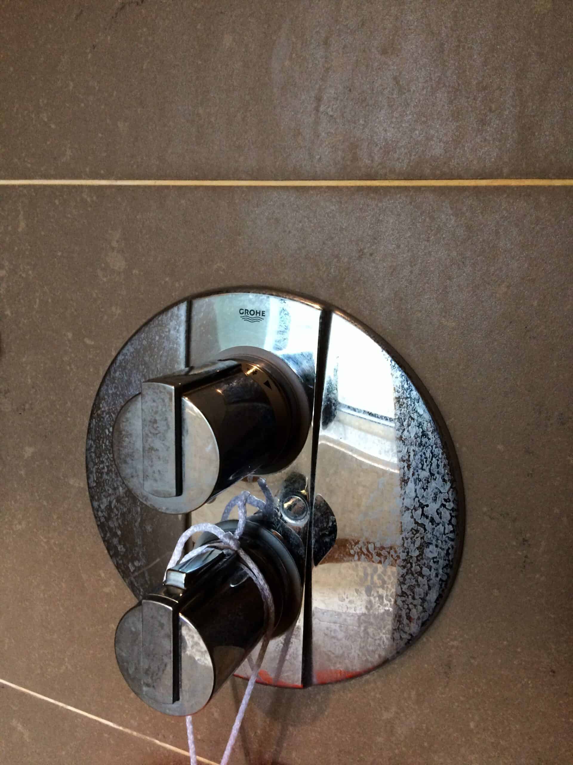 Nous avons une douche à l’italienne en carrelages classiques à la maison et les marques de savon, le calcaire et quelques disgracieux champignons avaient fait leur apparition.
